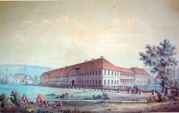 Gemälde des Hofguts um 1840 von Architekt Jakob Friedrich Dyckerhoff