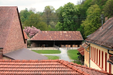 (Zugang über Treppe und Rampe mit Hebebühne , für häufigen Umschlag nicht geeignet)